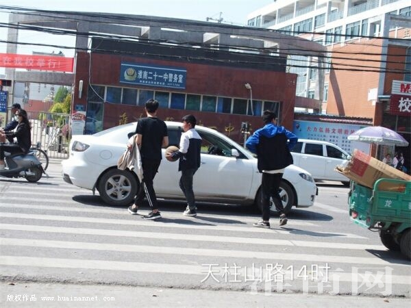 室外28度的高溫讓人不愿長時間停留在陽光下,13時50分,淮河早報、淮南網記者來到第二十一中學門前時,此時陸續有學生穿過馬路進入校園。明知有學校,但來往機動車在見到斑馬線時并不減速,仍是飛馳而過。一名戴帽子的女生過斑馬線時,走走停停,等了兩輛車駛過才走完了斑馬線。等待車輛最多的是一名男生,在等了五輛車行駛過去后,他才走完了斑馬線。