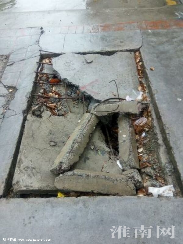 市民何先生向淮河早報(bào)、淮南網(wǎng)記者反映,淮南火車站弧形大道西邊人行道上,一處水泥制成的窨井蓋破碎,幾根細(xì)鋼筋裸露在外,存在安全隱患。(記者)