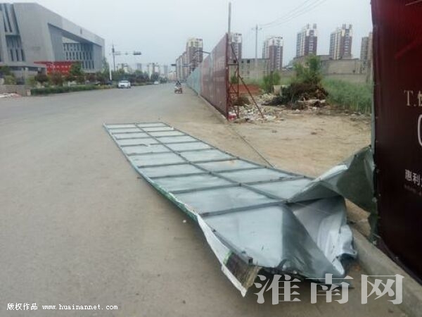 4月28日下午,淮河早報、淮南網記者在位于廣場北路西邊的居民通道上看到,一條約10米長的大型鐵皮廣告牌斜倒在道路上。據路人介紹,這塊鐵皮廣告牌橫躺道路已有多日。(記者)
