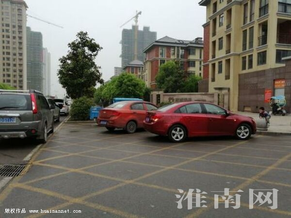 在潤水路西湖春天小區東門,經常有車輛亂停亂放,雖然附近劃有黃色網格線,但車輛仍放在路口將非機動車道擋住。(記者)