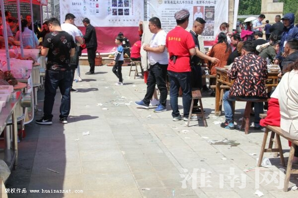 可在牛肉湯品嘗區,淮河早報、淮南網記者也發現了不和諧的一幕:雖然品嘗區的一側放置了垃圾桶,可部分游客還是習慣性地把用過的餐巾紙和一次性筷子包裝袋隨意丟棄在地上,使得整個品嘗區的地面又臟又亂,被風一吹更是不忍觀瞻。