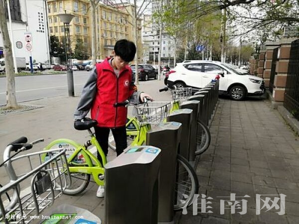 圖一:課外時(shí)間,馬樂天積極參加社會(huì)公益活動(dòng),給“淮小綠”做保潔。