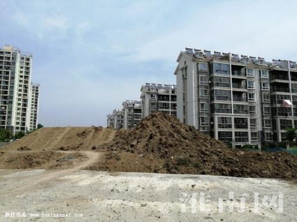 在居民的指引下,淮河早報、淮南網記者看到,在香樟苑二期北邊,與居民樓一墻之隔的地方也存在土堆裸露的現象,還有堆積的白色的物料也沒有覆蓋。
