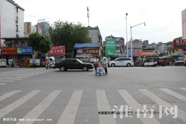 下午2時,淮河早報、淮南網記者在州來路與淮濱東路交叉口采訪時看到,這是一個沒有紅綠指示燈的三岔路口,有三段斑馬線相交成“U”形。雖然這里車流量沒有鳳城大道那么密集,可因為周邊小區眾多,且鳳臺縣醫院就在附近,所以機動車、三輪車、客運車輛通行的比較多,人流量也大。但比之鳳城大道,這個三岔路口的交通就顯得有些混亂,斑馬線等同虛設。