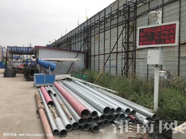 在現場,工地負責人把工地設置的一些防塵設備指給淮河早報、淮南網記者看。首先是工地揚塵監測系統,對于工地揚塵數值有實時監測,兩個霧化機分別放在工地的大門和工地道路一側,車輛出門時可以隨時進行噴霧除塵,工地還有環保監控系統,一旦出現異常,市生態環境局可以立刻監控到。工地負責人告訴淮河早報、淮南網記者:“我們這也有噴淋系統,那是針對渣土車運渣土時進行噴灑的,現在用不著了。現在主要是對于一些車輛帶的揚塵進行干預,這個主要就是用霧化機。但因為這個工地處在人流量比較集中的地方,所以我們會選在一大早沒有太多人的時候進行噴霧除塵,下午也會選擇在人較少時噴霧,盡量保證工地無揚塵。所以說我們是嚴格按照國家要求施工,絕不會把渣土帶上路面。”