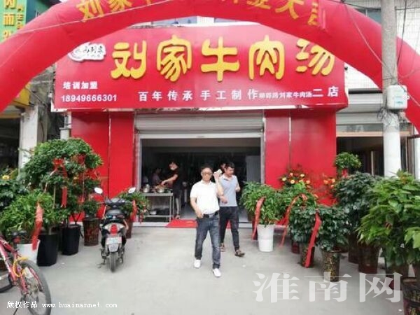 “小時候喝淮南牛肉湯的口感我至今都記得,即便幾十年過去了,我依然在尋找這份感覺。”1996年,劉家峰退伍回家,做的第一件事就是走上街頭,尋找一家淮南牛肉湯店,燙上一碗,品味一別多年的家鄉味。可連續換了幾家,都吃不出兒時的記憶。不如自己干吧!為了能博眾家之長,他和妻子從謝家集吃到田家庵,每周都要吃十余家,每吃一家都要回家總結。不懂的地方就站在鍋爐邊看,一邊學一邊摸索著干。“一天有時能喝上幾大碗,喝到最后都想吐。”為了提升湯的口感和色澤,劉家峰不斷請教老廚師,改進自己的技術,力爭達到原汁原味。
