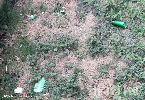 圖三:樓下草坪上的玻璃瓶碎片。(圖片由市民提供) (記者 王玲 實習生 邵壯 編輯 湯寧)