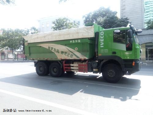 圖一:曾經(jīng)在學(xué)院路上拋灑的渣土車(chē)采取了嚴(yán)密的遮蓋措施。