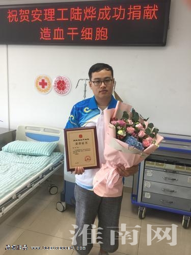 9月9日上午,安徽理工大學外國語學院大四學生陸燁成功捐獻造血干細胞挽救一名5歲急性白血病患兒,成為淮南市第21例、安徽省第191例,安徽理工大學第5例造血干細胞捐獻者。