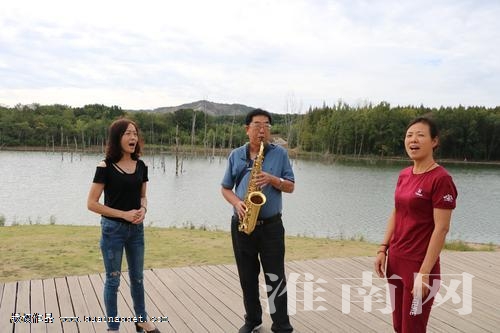 初秋時分,淮河早報、淮南網記者漫步在大通濕地公園,如同行走在連綿不斷的畫卷中。公園中湖光旖旎,水鳥在暢游;岸邊多種植物復層搭配、相互映襯,滿眼秋色。園中步步皆景,景景不同。棧道上,散步的市民不時停下腳步,欣賞身邊美景。在公園的涼亭下,市民郭傳軍吹奏著薩克斯,兩位朋友則在伴奏下,高歌《我和我的祖國》。“我們經常來這兒,這里綠化很好,花草樹木又多,周末休息的時候帶孩子來曬曬太陽,運動一下,挺好的。”郭傳軍說,這里交通方便,是休閑的好去處。