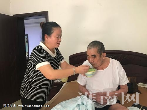 在楊修霞家里,淮河早報、淮南網記者見到了她的公公。雖然老人今年已有92歲高齡,又多年癱瘓在床,可精神很是不錯,他不停地夸贊自己有個好兒媳。楊修霞的姐姐告訴淮河早報、淮南網記者,妹妹是個非常善良的人,有什么好吃的總是先想到自己的公婆。十余年來每天給老人翻身、按摩,老人從未生過褥瘡。