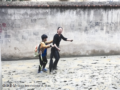 滿地泥漿孩子上學無法走