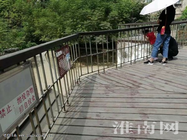 10月2日,在龍湖景區動植物園內,游客無視“禁止拋投雜物、擅自投食”的警示牌,隨意向小動物投放食物。(記者)