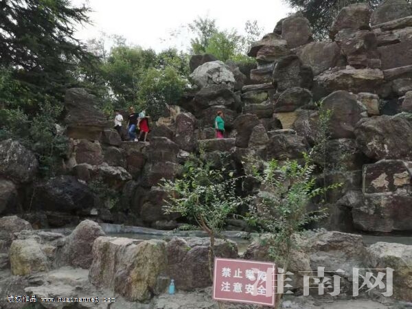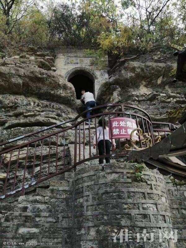 10月3日,茅仙洞風景區內,游客無視“禁止攀爬 注意安全”指示牌,隨意攀爬。(記者)