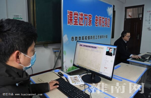 圖四:2020年1月31日,安徽淮南市空中課堂開(kāi)課,來(lái)自淮南市60名優(yōu)秀教師通過(guò)淮南市教師進(jìn)修學(xué)校網(wǎng)絡(luò)空間教室為近5萬(wàn)名初三、高三學(xué)生提供132節(jié)在線課程。陳彬攝