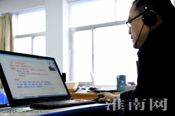 圖三:2020年1月31日,安徽淮南市洞山中學(xué)語(yǔ)文教師李方能通過(guò)視頻為淮南市初三學(xué)生答疑解惑。陳彬攝