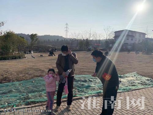 圖:范濤宣傳勸說父女倆戴上口罩
