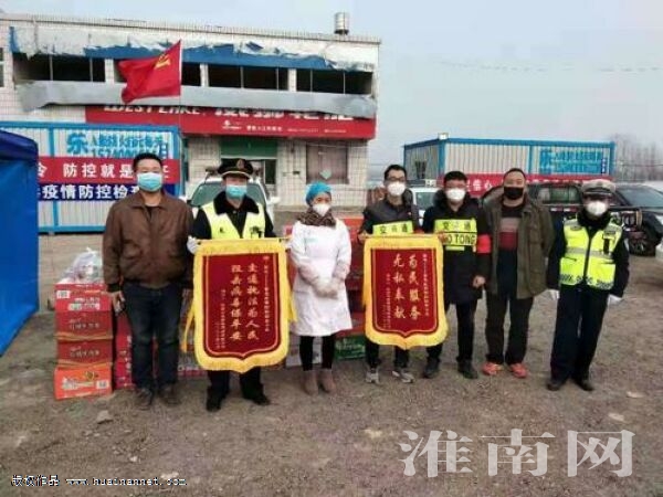 (記者 張雪峰 通訊員 薛全道)2月3日下午,淮南宇晟新型教材司負責人,向戰斗在疫情一線的淮南市公路局G206曹庵疫情防控檢查卡點送來兩面寫有“為民服務無私奉獻”“交通執法為人民 阻擊病毒保平安”的錦旗,還送來了口罩、方便面、礦泉水等慰問品,對日夜堅守阻擊疫情的執法人員以及工作人員認真負責態度表示衷心感謝。