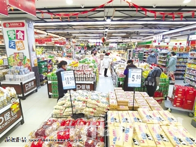 2月17日上午,大通區洛河鎮居民在蘇果超市選購生活必需品。疫情發生以來,大通區加強農副產品等居民生活必需品的調配和市場供應,強化市場監管,保障居民生活平穩有序。從區商超疫情防控專項工作組重點監測的11家商超看,糧、油、肉、蛋、菜等生活必需品供應充足,價格平穩。(通訊員 潘雪潔 記者 朱慶磊)