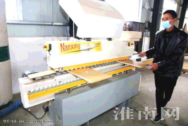 3月13日,大通區孔店鄉歡燈村剛脫貧貧困戶鄭義白在家門口的“扶貧車間”工作。2019年,市委老干部局駐村扶貧工作隊引入淮南中正家具有限公司,在歡燈村建設“扶貧工廠”,就近吸納貧困戶就業。鄭義白于2019年7月開始到“扶貧工廠”上班,主要從事板材縫邊工作,月收入近2000元,實現了穩定脫貧。(記者 朱慶磊 通訊員 巢欽)