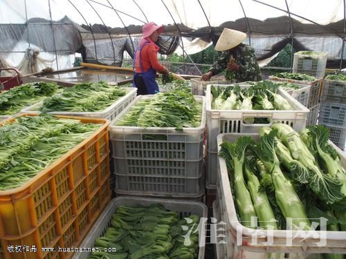 4月中下旬,淮河早報、淮南網記者來到位于隱賢鎮姚集村的鑫盛蔬菜種植基地,只見600多畝連片的塑料大棚整齊排列,高大氣派。走進棚內,綠油油的蔬菜長勢喜人,品種豐富。農戶們有的采摘,有的分揀裝袋,忙碌而有序。采收后的蔬菜要送到一處凈菜池,經過水流預洗既保證了菜苗的清爽干凈,還保持了蔬菜的鮮嫩。然后,一筐筐新鮮蔬菜就裝車運出。