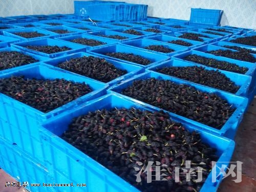 5月桑葚采收季,時值春夏之交,結果早,此刻害蟲還未長成,不需施以農藥,不會產生藥害,因此桑葚還是健康的果實。近年來保健果品桑葚受到了人們的熱捧,果農們的種植熱情也很高。在潤航農業基地,近300畝桑園每日采收量達到4、5千斤,由于桑葚鮮果不易儲藏,為此公司與安徽合肥三河的一家酒廠合作,加工生產果酒,增加經濟效益。為此,公司專門建有冷庫,每日采收的桑葚可暫存冷庫,留待酒廠拉走。而桑葉富含蛋白質,桑蠶吐絲即為例證,因此桑葉可發酵喂豬,進一步加強循環利用。