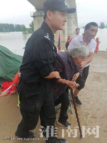 7月26日下午,民警劉高明在渡口背著一位98歲高齡的老人轉移上船,劉高明說:“從老奶奶家到渡口短短幾百米的距離,路的兩旁還坐著尚未轉移的村民。這一路上村民們紛紛對我說讓我放下老人休息會,進屋吃點西瓜,還有人塞了一個雞腿放進我的救生衣里,把煮好的雞蛋放進我的口袋里,我當時淚水混合著雨水在眼角打轉,最樸素的村民、最樸實的語言給我的卻是最美的感動。”當劉高明把老人送上船時,老人眼含淚水說:“我都一把年紀了,你們還沒有忘記我,真是多虧了你們,你們警察真是我們老百姓的守護神啊。”