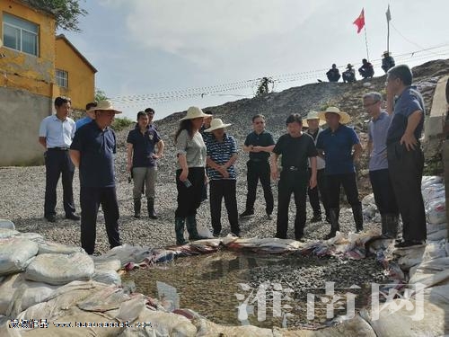 (記者 張明星)7月28日下午,淮河早報、淮南網(wǎng)記者在淮河大堤田家庵區(qū)安成鎮(zhèn)石頭埠村值守點采訪時看到,來自省水利廳、市水利局等部門的水利專家正為淮河大堤“把脈問診”,指導防汛人員科學防汛處險。