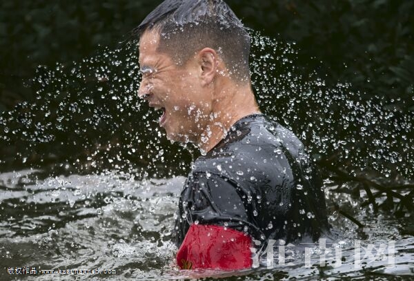 圖十:趁小憩擰干衣衫上的汗水。