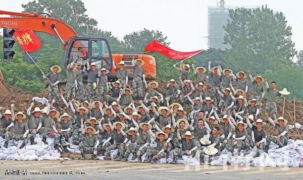 圖十一:官兵們挖土、裝袋、搬運,揮汗如雨,彰顯了新時代最可愛的人的風采。(攝影 倪 軍 陳 彬 趙 陽 陳海濤 宋桂全 陳 俠 王曉珂 黃冠寶)