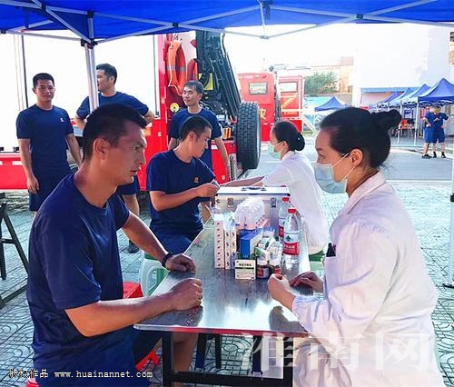 (記者 冉韜)“我們的許多隊員從防汛一線回營后突發不適,請速派醫生前來治療。”市消防救援支隊相關負責人急切地向醫院救助。8月3日下午,淮南朝陽醫院接到救助電話后,迅速派出醫務人員趕往壽縣三覺鎮。經過約2小時的顛簸,來到現場。