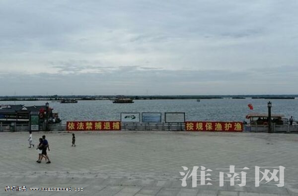 在焦崗湖景區標志性建筑“水城云臺”左側觀湖平臺圍欄上,一行“依法禁捕退捕,按規保漁護漁”紅底黃色大字的宣傳標語顯得格外醒目;宣傳標語間隔間三塊公告欄中,從右向左依次張貼著《公告》《毛集實驗區管理委員會關于實行全面禁漁的公告》《淮南市焦崗湖芡實國家級水產種質資源保護區規劃示意圖》,明確公示著焦崗湖芡實國家級水產種質資源保護區的區域位置和相關保護措施;站在觀湖平臺極目遠眺,焦崗湖碧波蕩漾,一望無際,昔日湖中圍網養殖的場面已不見蹤跡;在焦崗湖國家濕地公園管理處工作人員的帶領下,乘船進入焦崗湖芡實國家級水產種質資源保護區,只見荷花盛開,大片的芡實、野菱、蘆葦在水中自然生長,各種鳥類水禽在這里棲息繁衍,構成了一幅自然和諧的生態畫卷……這是8月初,淮河早報、淮南網記者在焦崗湖景區及焦崗湖芡實國家級水產種質資源保護區采訪時看到的情景。