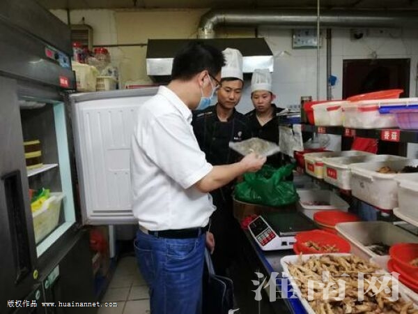 圖:田家庵區市場監管部門檢查餐飲企業(記者 廖凌云)