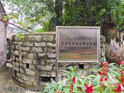 九龍崗老火車站南碉堡是2017年在我市新發現的日軍侵華罪證之一。當年的二月份,淮河早報、淮南網記者跟隨最早認出這處碉堡的現市政協文史專員楊鋆一起前往大通區九龍崗鎮對這處碉堡進行探尋。當時,我們繞過九龍崗鎮一段曲折的街巷,穿過一條寬不過一米的羊腸小道,走進淮新村一戶瓦房院落,在其房屋外墻一角,找到了這座暗堡。
