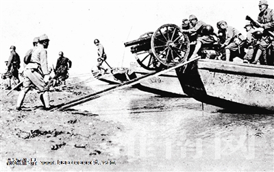 圖為日軍將火炮運往鳳臺城外。(記者 李鈞)