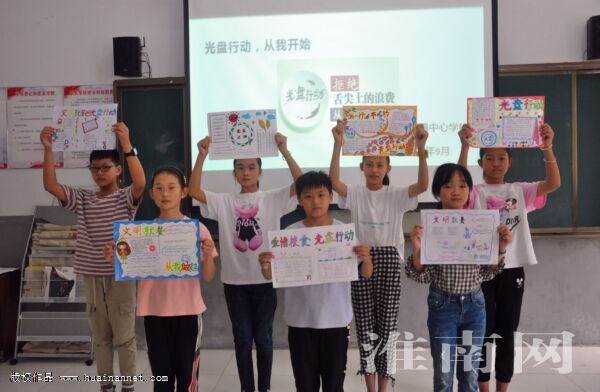 9月15日,鳳臺縣朱馬店鎮中心校開展“光盤行動、從我開始”主題繪畫比賽,引導學生從小樹立儉以養德理念,養成厲行節約、反對浪費的好習慣。圖為學生展示自己的繪畫作品。(通訊員 田文體 記者 朱慶磊)