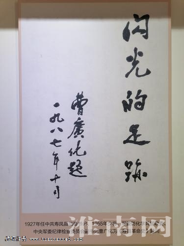 圖二:曹廣化為《壽縣革命史題詞》,現陳列于小甸鎮壽縣革命烈士事跡陳列室。(記者 柏雪 王偉)