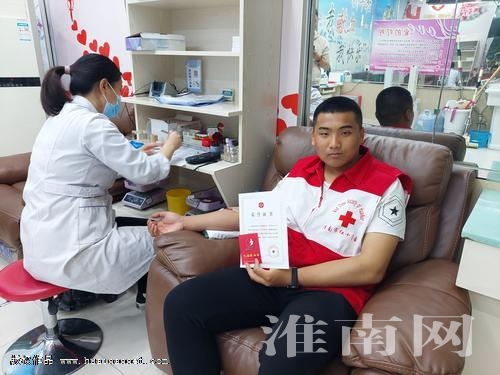 當日臨近中午,楊來福帶著同學興沖沖地來到市紅十字會,說自己剛從市里一所高校自主招生考試考場出來。他說自己剛滿18歲已經符合獻血和造血干細胞捐獻采樣的年齡了,想實現這個期待一年多的心愿。工作人員便指導他到了獻血屋,詢問情況時,才知道他一早從潘集家里趕來考試,考完就急急忙忙趕來,還沒吃飯,工作人員又叮囑他趕緊去吃飯,隨后才獻血。楊來福匆匆忙忙去吃了幾個餅,一會又回到獻血屋,填表、采血、留樣。看到那袋紅色的血漿和獻血及采樣證書他很是欣慰,感嘆自己終于等到了這一天,還逗趣陪同他一起來的還未滿18歲的同學:“趕快長,等你滿18歲了,我來陪你獻!