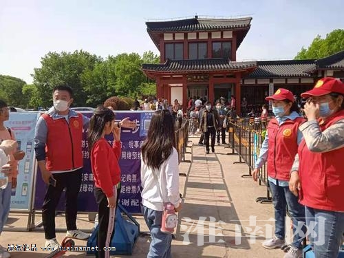 當天下午,在景區參加志愿服務的淮南市義工聯合會西部分站站長蘇軍向淮河早報、淮南網記者介紹,從5月1日至5日,整個“五一”假期,志愿者每天從早上8時到下午5時,一直堅守在八公山風景區入口,在共青團八公山區委的帶領下,開展登記、測體溫、維持秩序等志愿服務。