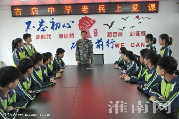近日,在鳳臺縣古店鄉古店中學,學生們正在聆聽退役老兵童學彬講述黨史。學生們紛紛表示,要不忘初心、牢記使命,用實際行動踐行“聽黨話、跟黨走”、好好學習的青春誓言。(記者 賈 靜 通訊員 劉良智)