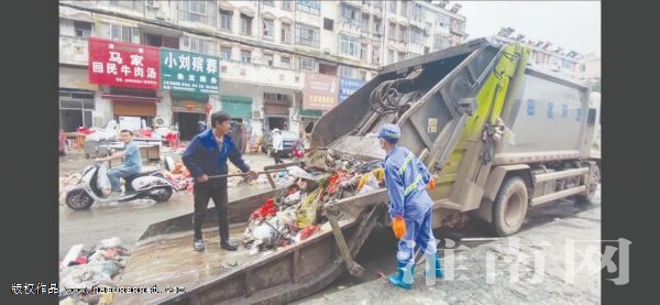 而我市田區(qū)環(huán)衛(wèi)處的環(huán)衛(wèi)工人冒著高溫忍著惡臭,在這里不停地清運著大量的垃圾。在現(xiàn)場忙碌的環(huán)衛(wèi)工人告訴淮南日報全媒體記者,“從17日到現(xiàn)在,田區(qū)環(huán)衛(wèi)工人就一直在清理強降雨帶來的淤泥和垃圾雜物。把所有垃圾清運之后,再用清洗車對路面進行清洗消毒。由于垃圾清運量太大,一線的環(huán)衛(wèi)工人已經(jīng)超負荷工作,但是為了市容盡快恢復(fù),給市民一個潔凈的生活環(huán)境,我們一線環(huán)衛(wèi)工人一定會克服困難,加班加點,盡快把受災(zāi)區(qū)域環(huán)境徹底恢復(fù)。”