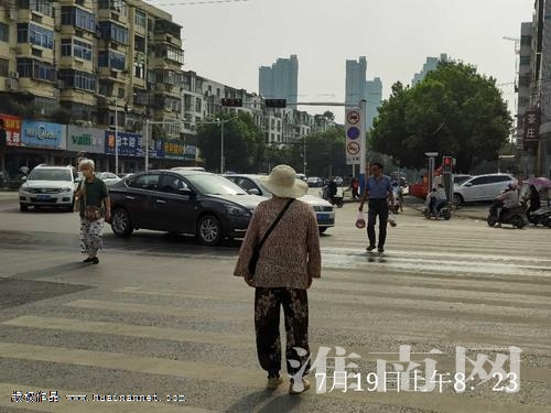 8時23分,不少市民買菜回來,這時行人闖紅燈現象多了起來,尤其是上了年紀的人,手拎著菜在馬路中顫顫巍巍穿梭,淮河早報、淮南網記者都不免為他們擔心,交警上前幫忙,嚴厲地批評他們,老人有的說沒看到紅燈在哪,有的則說剛過馬路時是綠燈。