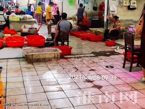 在泉山農貿市場南側,通往地下一層對面,有一排商鋪。淮河早報、淮南網記者看到,有經營活禽的經營戶,將裝有活禽的籠子擺放在商鋪外經營。而在地下一層的水產區和冷凍區,淮河早報、淮南網記者看到,大多經營戶存在出攤經營現象,將貨品擺放在攤位外或商鋪外的公共通道上,占道經營。當天上午9時39分,在水產區,淮河早報、淮南網記者看到多個經營戶將大大小小的盆擺放在公共通道上,有的直接將魚等攤放在地上售賣,有的經營戶在公共通道上宰殺。從該水產區公共通道經過,路面上都濕漉漉的。9時41分,淮河早報、淮南網記者在冷凍區看到,一經營戶將凍品攤直接擺放在公共通道上,將通道占據近乎一半。9時43分,淮河早報、淮南網記者在市場地下一層東側服裝區看到,多個服裝經營戶也是將服裝擺放在商鋪外展示銷售。9時58分,淮河早報、淮南網記者來到市場一樓,在活禽區看到,也有經營戶將裝有活禽的鐵籠子擺放在攤位外的通道上。