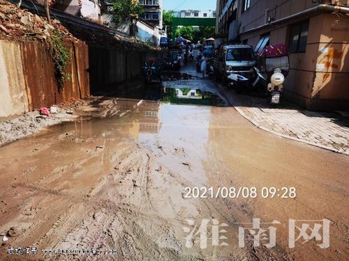 除機動車亂停外,在泉山農貿市場內外,更多是兩輪或三輪的電動車、摩托車亂停放。在泉山農貿市場前的人行道上,沿路施劃了很多非機動車停放區。9時15分,記者看到,在位于市場前路段,人行道非機動車停放區停滿車輛,一些前來買菜購物的市民為了方便,就將車輛直接并排停放在非機動車道上,雖然靠近市場東西兩邊非機動車停放區也有很多空余。9時20分,淮河早報、淮南網記者看到,在泉山農貿市場東側一條通道兩側也停放了一些非機動車,而通道兩側并未施劃停車區。而在市場西側和南側,也都存在車輛不規范停放的現象。需要特別指出的地方是,在市場西側,通往地下一層的通道上,由于旁邊施工,污水流淌一地,導致該通道上存在大量污水和污泥,臟臭難聞,不僅污染環境,而且還影響通行。