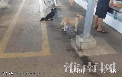 因為地方不大,人也不多,整個菜市場顯得比較寬敞,兩只在市場里“閑逛”的小狗就顯得特別顯眼。淮河早報、淮南網記者先是在一處賣熟食的攤位前看到了這兩只小狗,它們眼望著食物,時而站立,時而來回走動。過了幾分鐘后,它們又跑到另一處賣熟食的攤位前,重復著或站或走的動作。就這樣,兩只小狗不停地在菜市場內四處亂跑,一會兒嗅嗅買菜的市民,一會兒嗅嗅菜籃子,然后再回到熟食攤前。