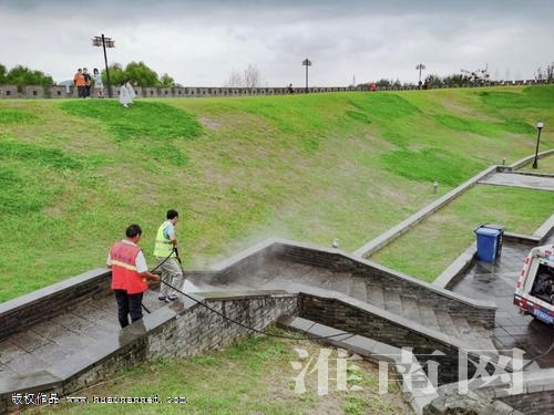 為了最大限度保護好月壩設施,提升游樂體驗,壽縣城管局安排了固定的環衛工人在此處進行清掃保潔,同時機械保潔車輛也在附近進行循環保潔。此次行動中,除對“月壩”進行“美容”外,還對內環路進行了機械沖洗,確保這一區域干凈整潔。