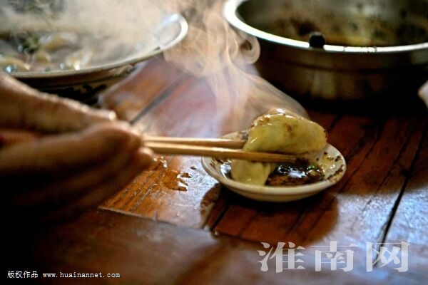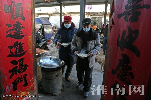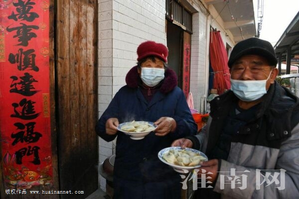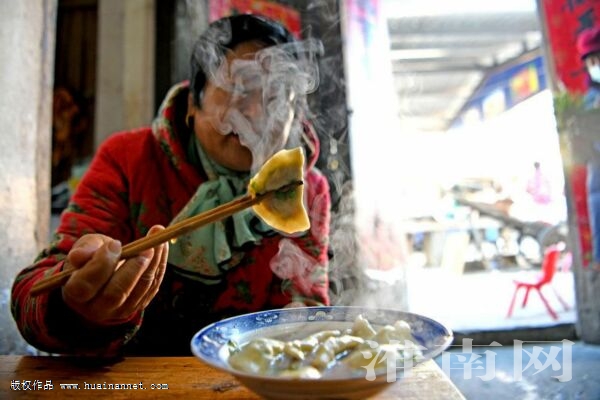 ▲壽縣安豐塘鎮蘇王街道群眾吃熱乎乎的餃子。