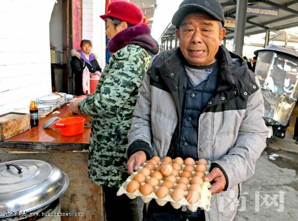 ▲12月19日,安徽省淮南市壽縣安豐塘鎮蘇王街道姚傳永老人買雞蛋,準備包餃子。