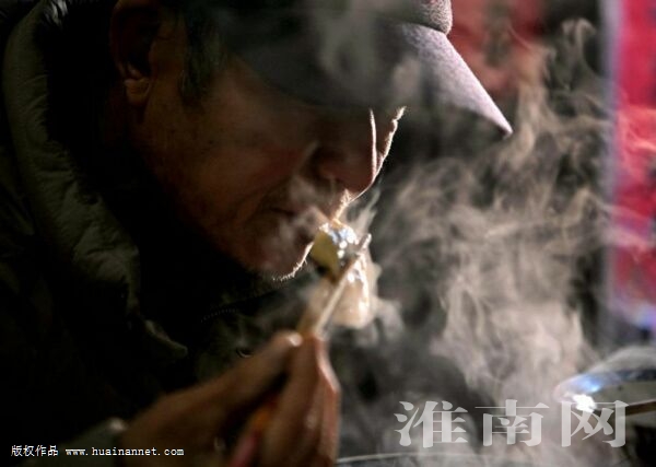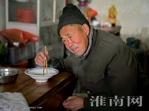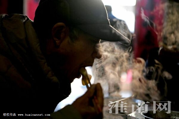 ▲12月21日,安徽省淮南市壽縣安豐塘鎮蘇王街道老夫妻姚傳永(中)、胡多平3元一碗熱乎乎的餃子溫暖鄉村老人。