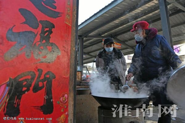 進入寒冬,江淮分水嶺地區最低氣溫零度左右。安徽省淮南市壽縣安豐塘鎮蘇王街道的集市隔天逢集。姚傳永家的餃子店位于集市路口,每碗3元16個餃子,葷素同價,熱乎乎的餃子成為當地趕集老人首選早飯。